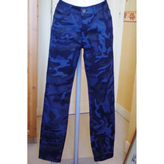 Neuf avec étiquette, prix d’achat 155 € - Jean 7/8, coupe slim, motif camouflage bleu marine. Fermeture zippée et boutonnée