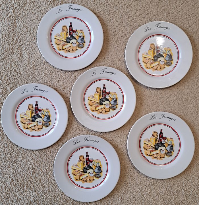 🍽 Lot de 6 assiettes en porcelaine aux décors « Les Fromages », mesurant 21cm de diamètre