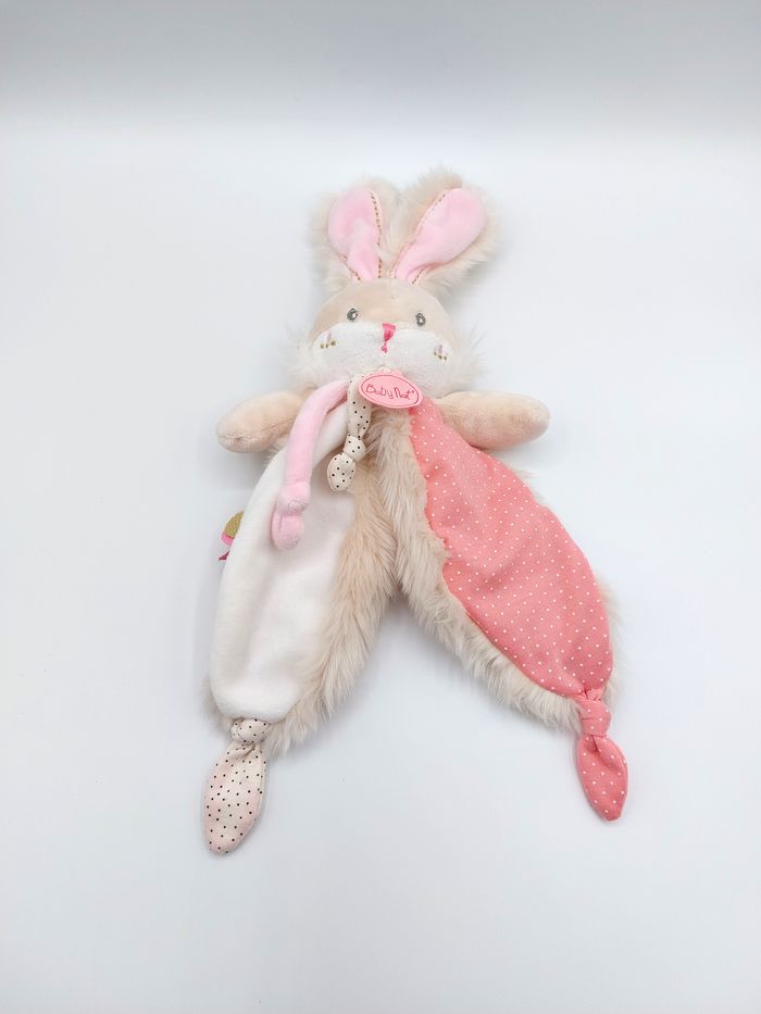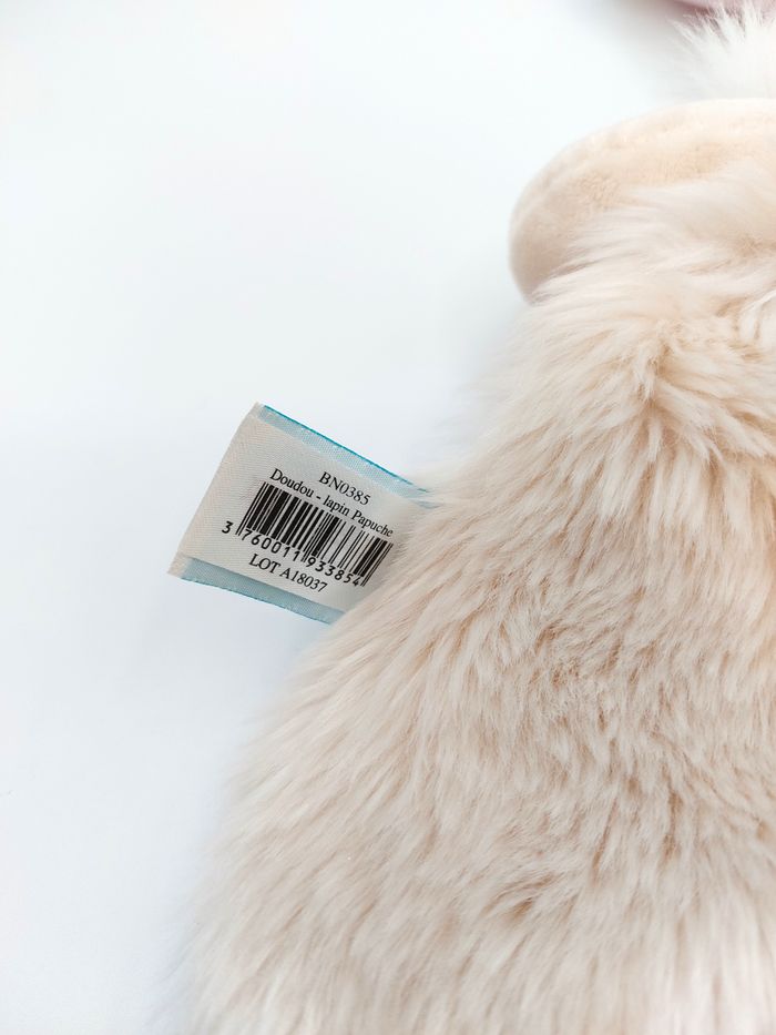 Doudou peluche lapin Papuche BABY NAT fourrure beige blanc rose BN0385 pois très bon état, il n'a pas servi mais suite à son lavage, il y a eu un transfert rose sur la nouette beige à droite (photo 4). Sur la photo 5, le micro trou sur l'oreille correspond à l'attache plastique du magasin. Envoi rapide 👋 Vendeur professionnel – articles soigneusement sélectionnés, nettoyés et vérifiés avant expédition. A12703 #babynat #doudou #lapin #peluche #neuf