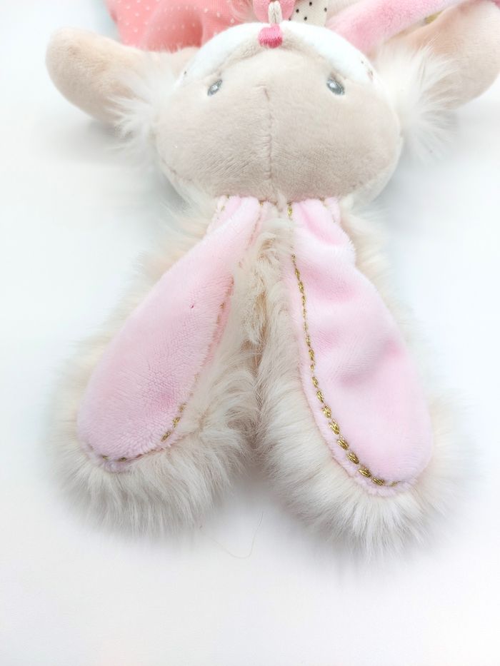 Doudou peluche lapin Papuche BABY NAT fourrure beige blanc rose BN0385 pois - photo numéro 3