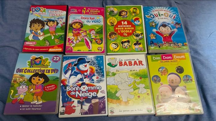 Je vends un lot de 8 CD de dessins animés pour enfants, idéals pour les plus petits. Ils contiennent des histoires et des animations amusantes, parfaites pour les moments de détente, de jeu ou à regarder en famille.