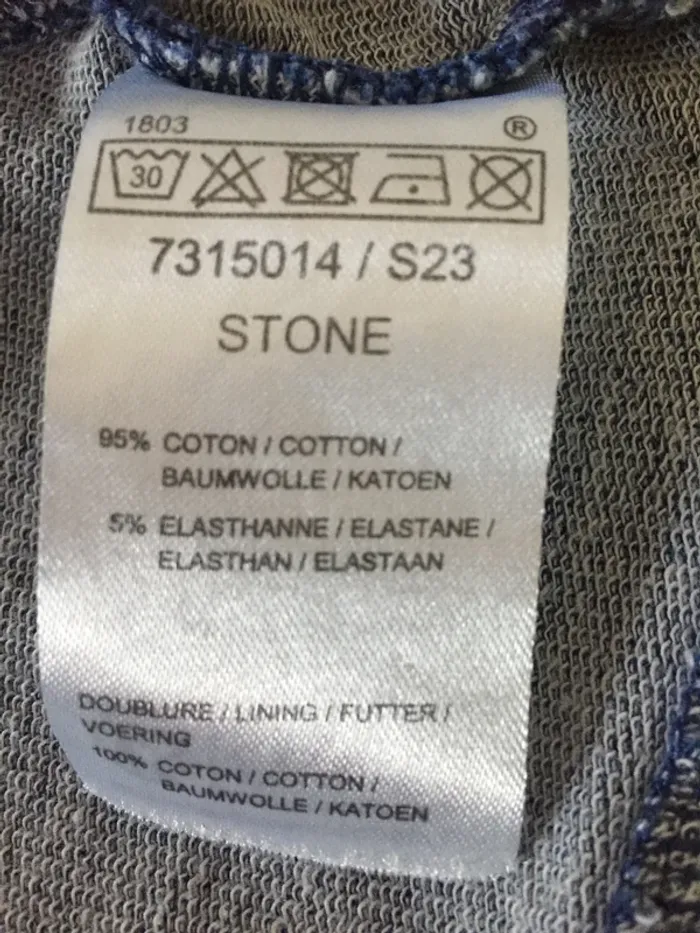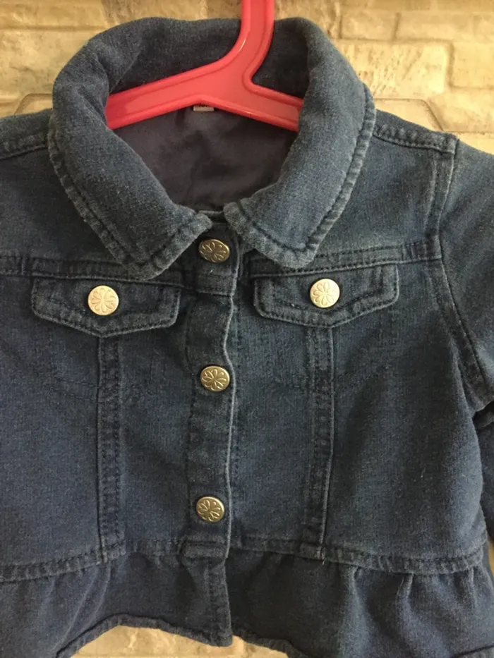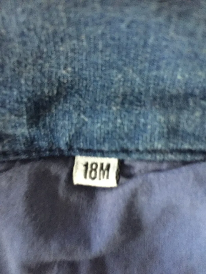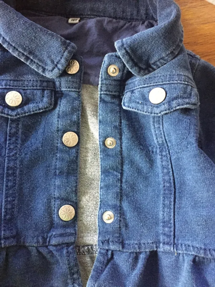 Blouson jean à basque 18M, fermeture boutons-pression métal, 95% coton, 5% élasthanne - TBE