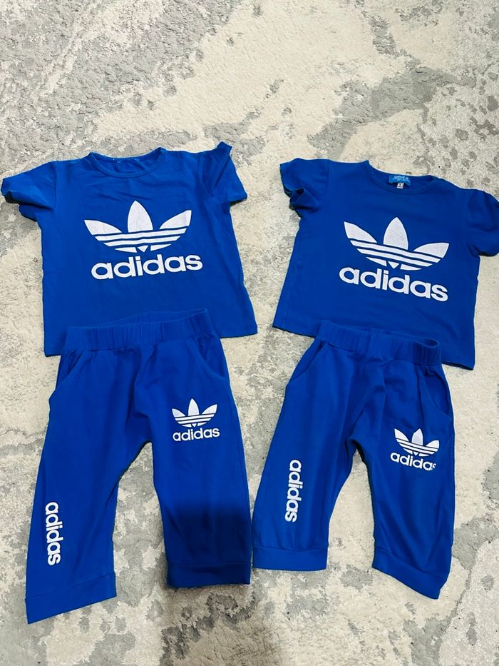 Je vends 2 ensembles pour enfant, chacun composé d’un t-shirt et d’un short :