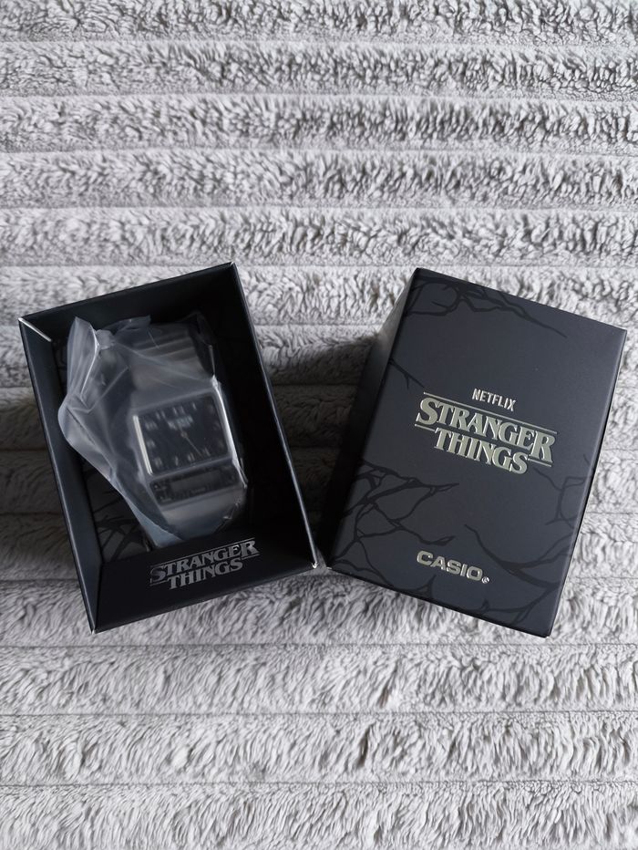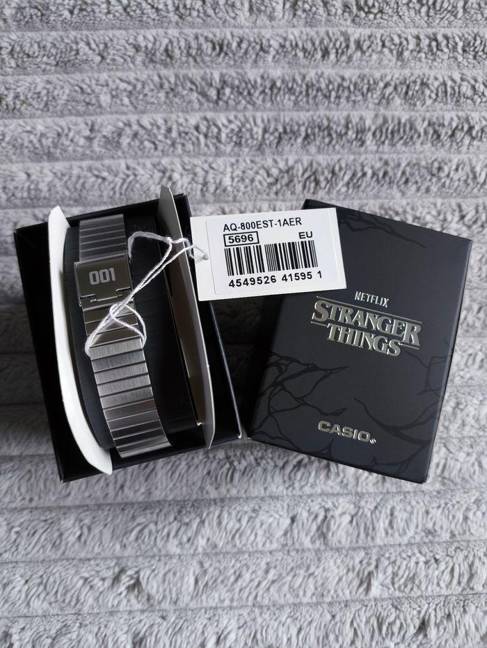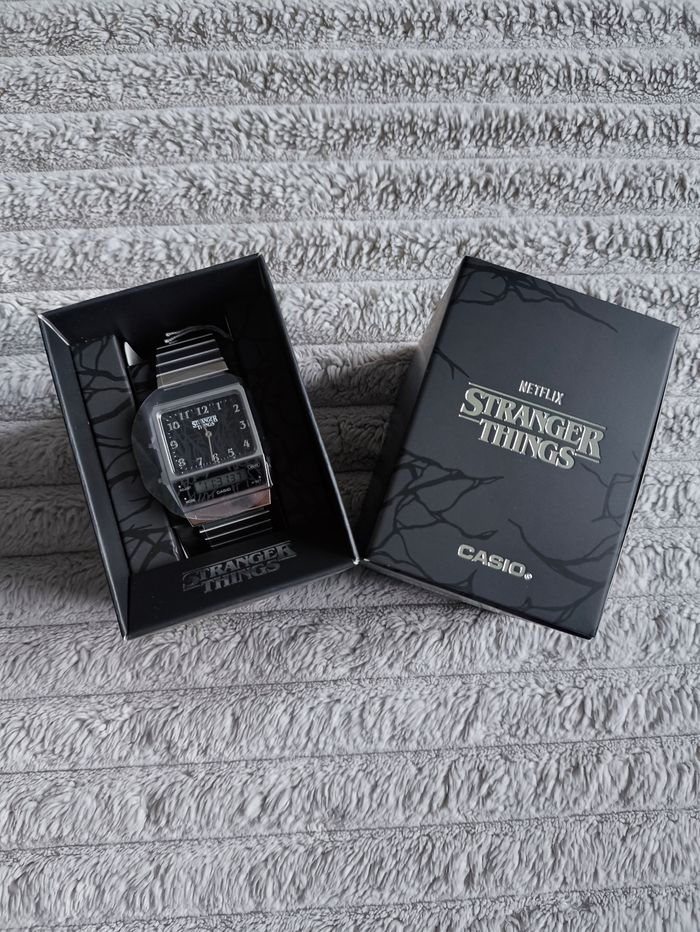 Cette édition spéciale Casio, issue de la collection Edgy et créée en collaboration avec Stranger Things, dévoile un cadran enveloppé de vignes tortueuses inspirées de Vecna, l’antagoniste le plus redouté de la série. Les index reprennent la typographie emblématique de Stranger Things, ici transformée en lettres métalliques en relief, ajoutant une dimension sculptée qui accentue l’aura sombre et surnaturelle du design. Le fond de boîtier est délicatement gravé du logo de la série, tandis que le fermoir se distingue par l’inscription « 001 », un hommage direct au tatouage de Vecna. Présentée dans un emballage collector illustré du Demogorgon et de visuels exclusifs, cette montre allie élégance rétro, détails immersifs et références subtiles, pour une pièce de collaboration unique célébrant la dernière saison. - mouvement à quartz - verre acrylique - bracelet en acier inoxydable argenté - boucle clipable.