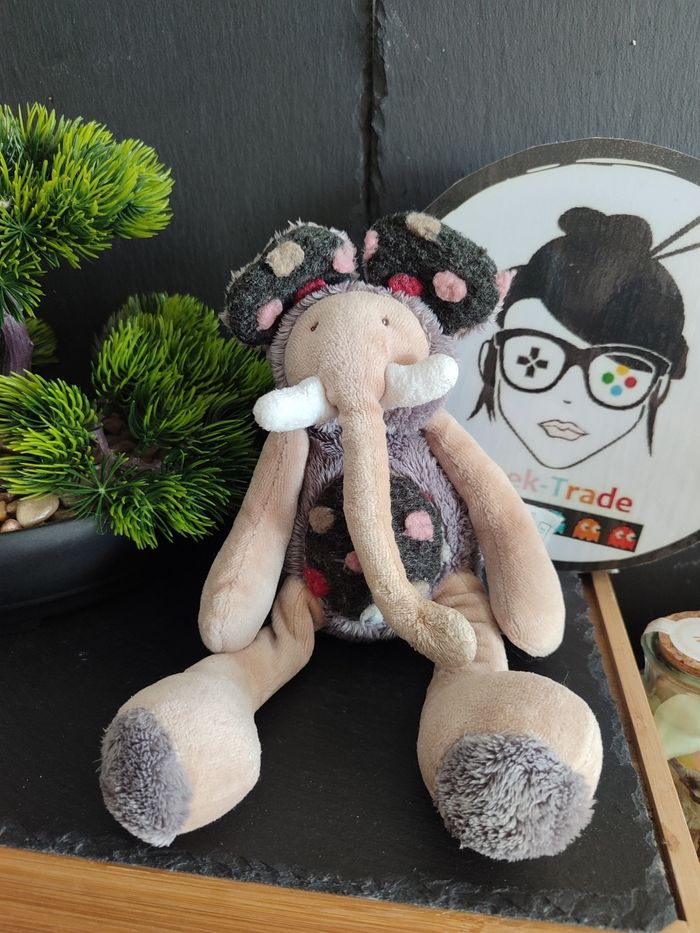 doudou peluche éléphant moulin roty les zazous gris beige noir brrouuu Baou