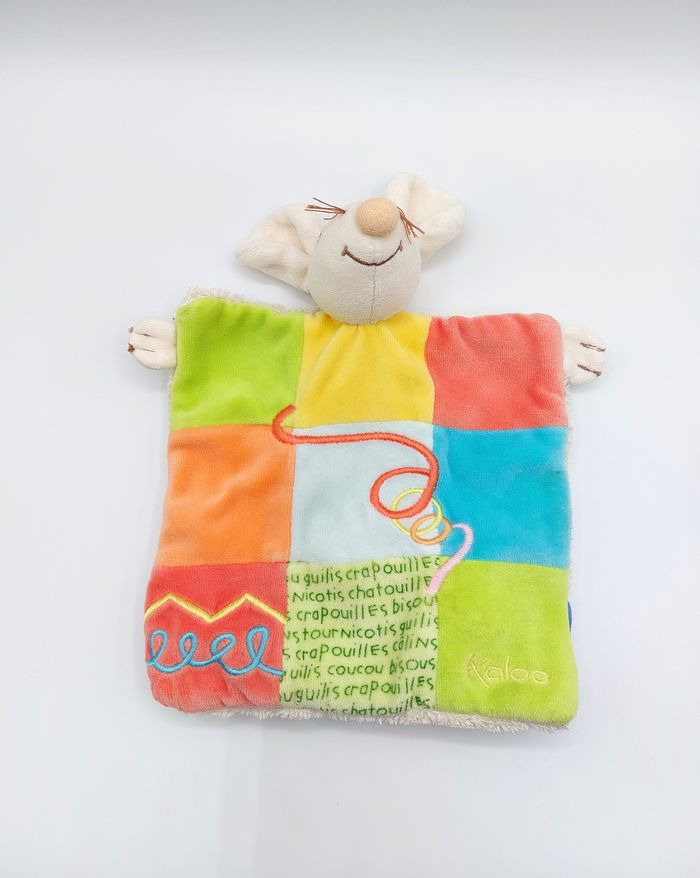 Doudou plat marionnette souris KALOO crapouilles patchwork collection 1998-2005 spirales vintage - photo numéro 1