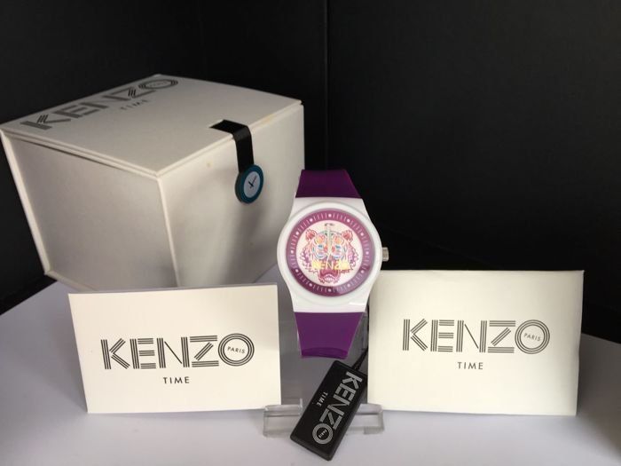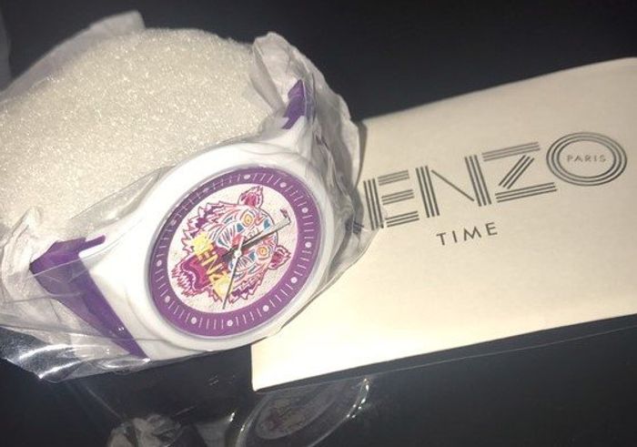 Montre Kenzo Femme neuve – Coloris violet avec bracelet en silicone blanc et violet.