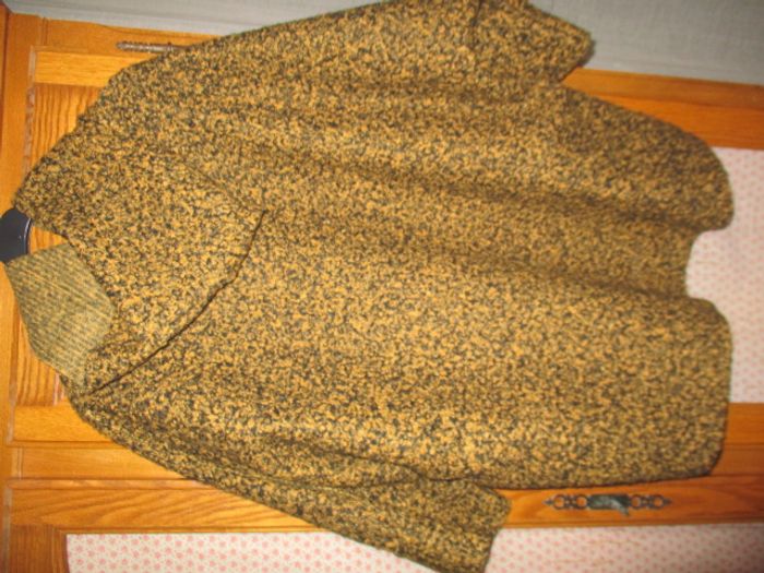 Manteau Cape avec capuche manche trois car pour la fermeture c'est avec des boutons Taille 54 .. 86 cm aisselle a aisselle 83 cm de long couleurs NOIR / MOUTARDE tout neuf TRES CHAUD ..ATENTION PAS DE TAILLE DE MARQUE SUR LE LE MANTEAU CAPE