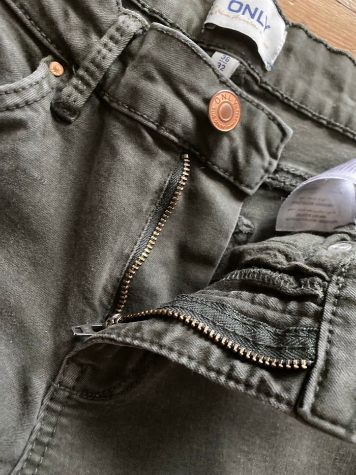 Jeans cargo jeggpant kaki Taille 36 98% coton 2% elasthane Marque Only La ceinture mesure à plat sans tirer 33,3 cm, va jusqu'à 41 cm en tirant Hauteur milieu devant niveau braguette 20,3 cm Longueur entre jambe 67,8 cm Largeur à plat bas des jambes 13,2 cm