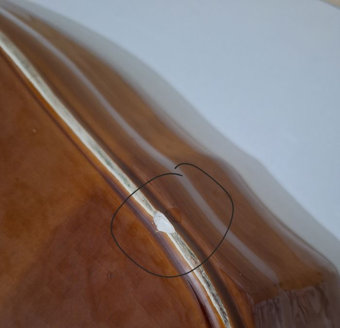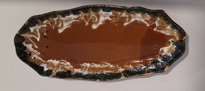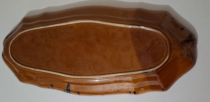Longueur 58 cm. Largeur 26 cm. Le décor est en relief. Hauteur 4 cm. Très lourd. Juste un petit éclat en dessous.