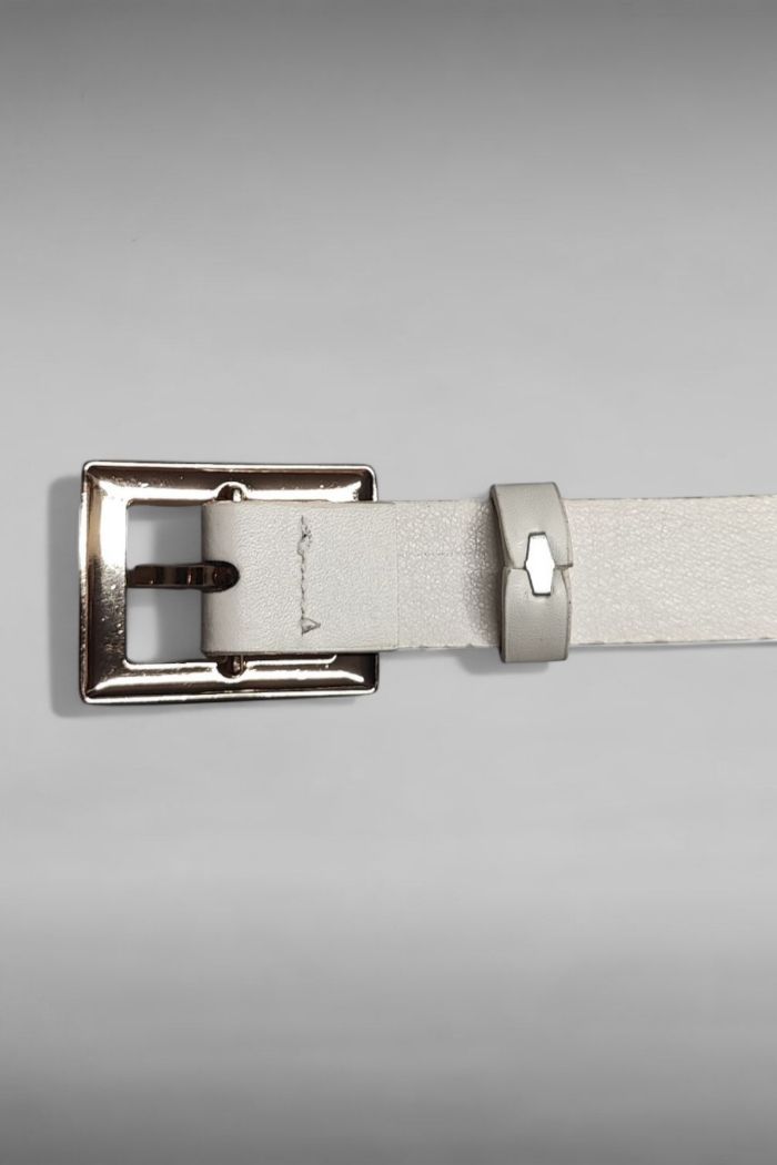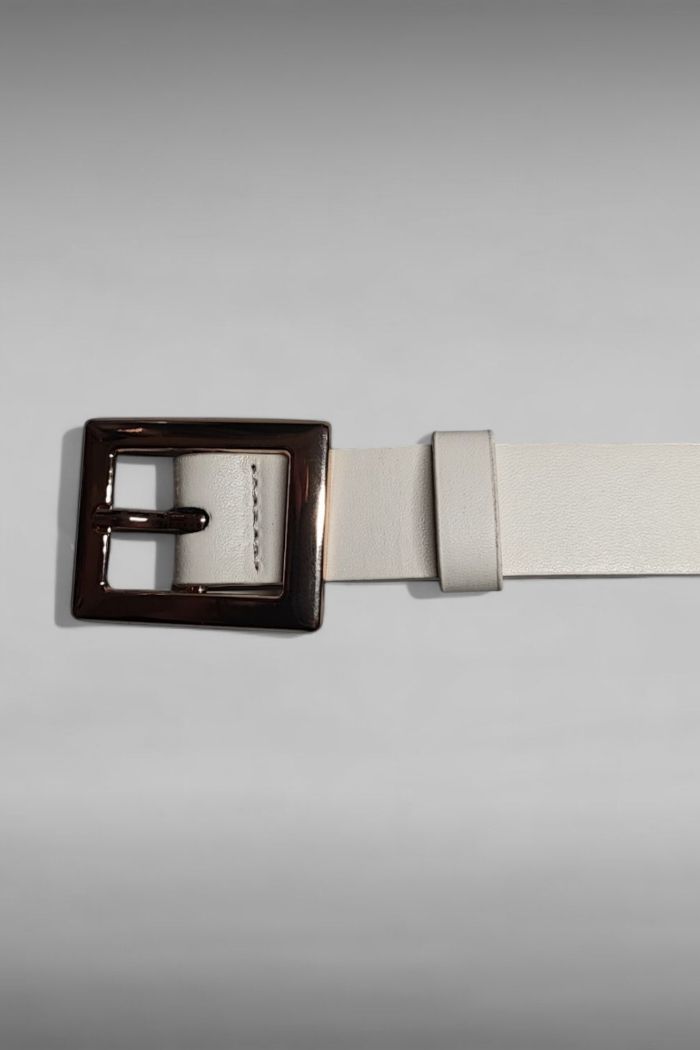 Coloris blanc avec boucle en acier dorée, idéale pour un style élégant et raffiné au quotidien.
