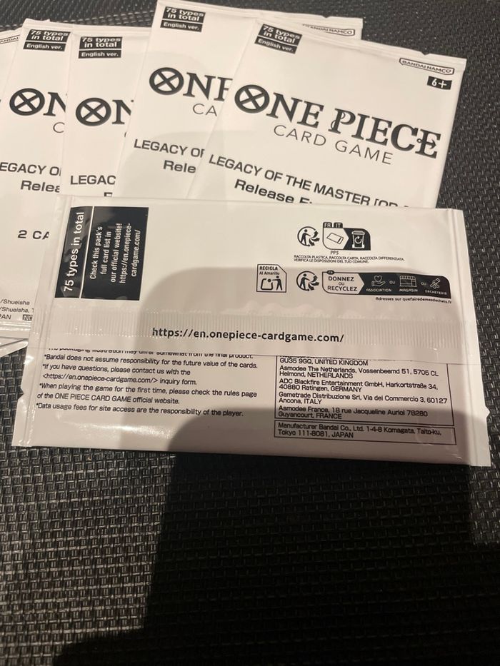Lot 7 boosters One Piece card game Legacy of the master OP-12 release évent pack scellés