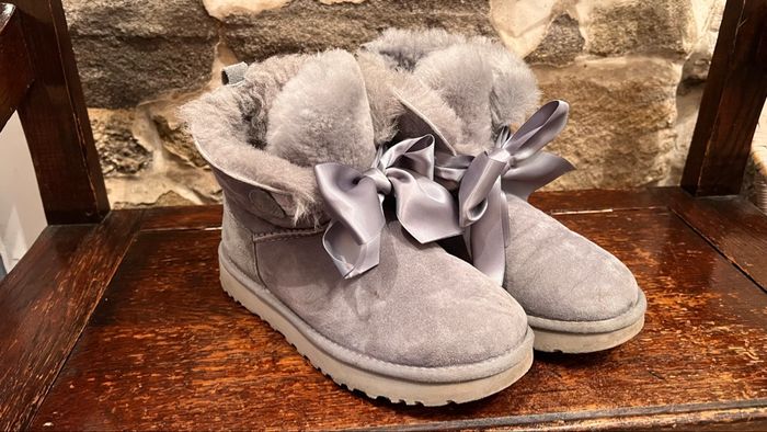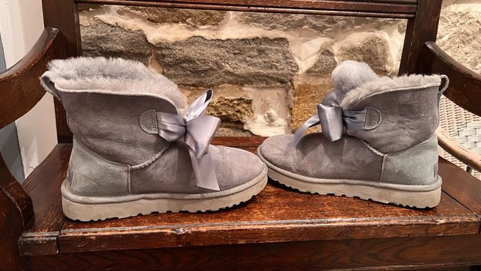 Bottines grises avec noeud sur le devant Taille 37 mais ça taille petit , conviendrait mieux à une taille 36 Peu portées #ugg #uggboots #uggfemme #uggfrance