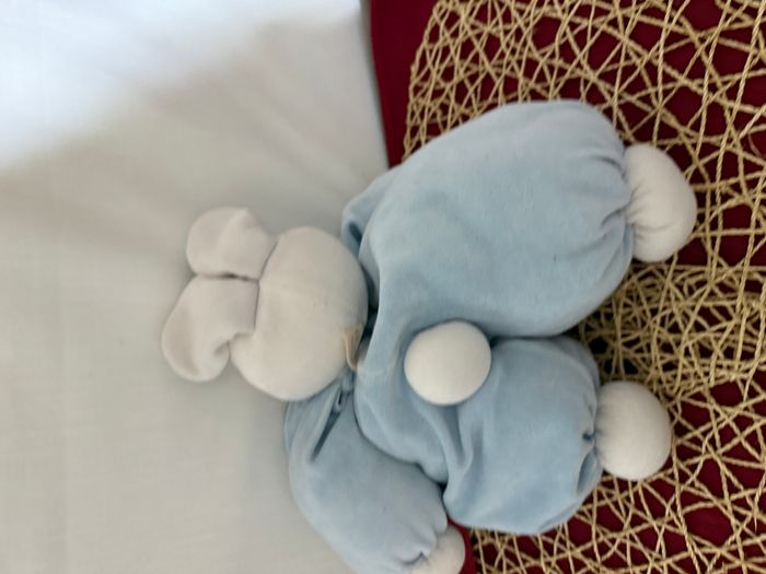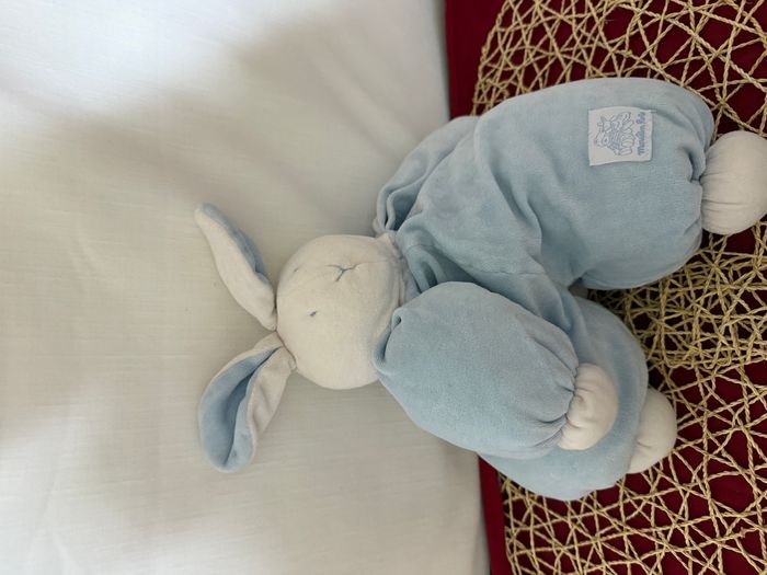 Doudou Lapin bleu blanc Moulin Roty - photo numéro 4