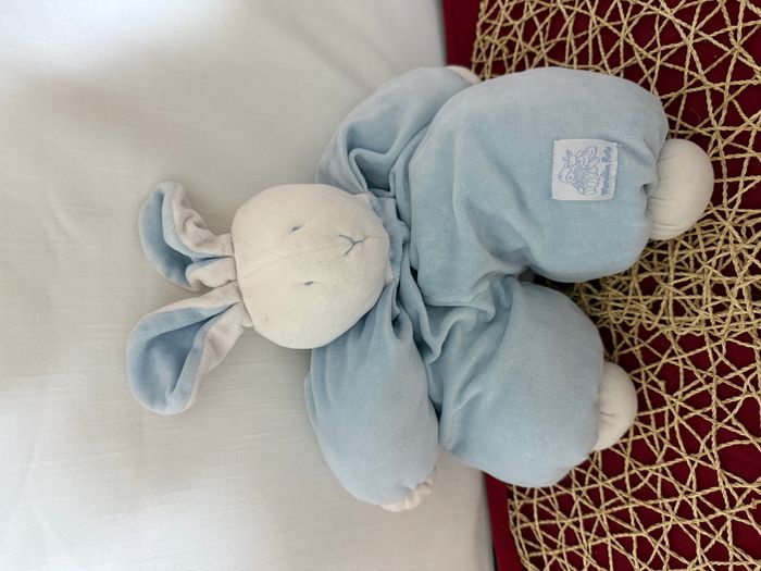 Doudou Lapin bleu blanc Moulin Roty - photo numéro 1