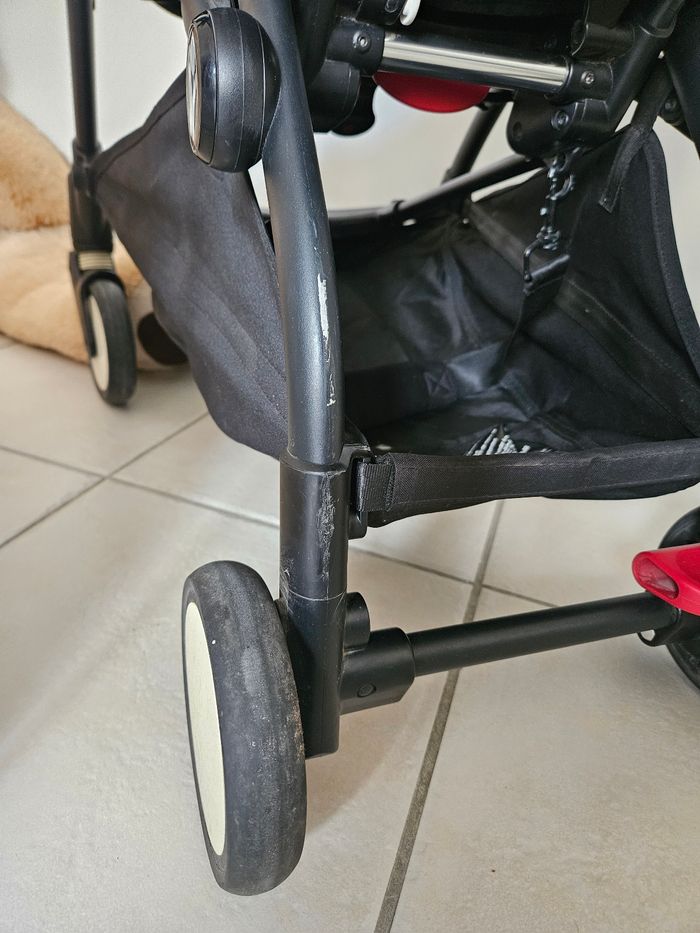 - griffe arrière du cadre sous la poussette