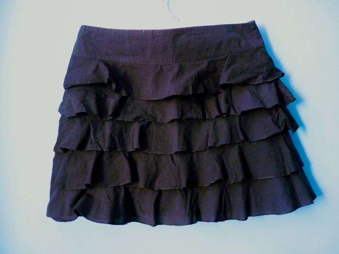 Jupe Promod Femme 38 M noir à volants froufrous TBE