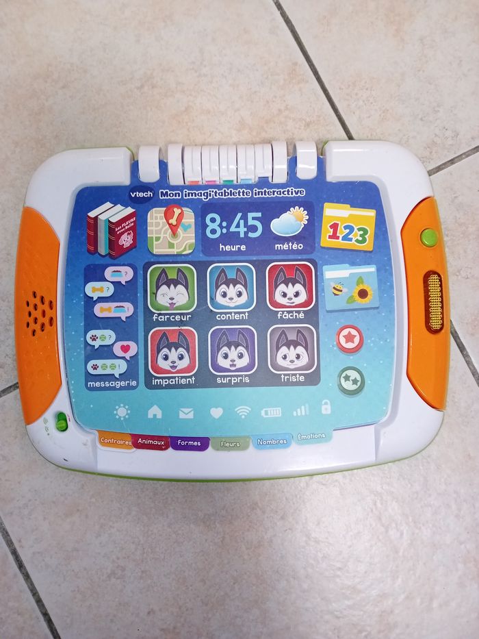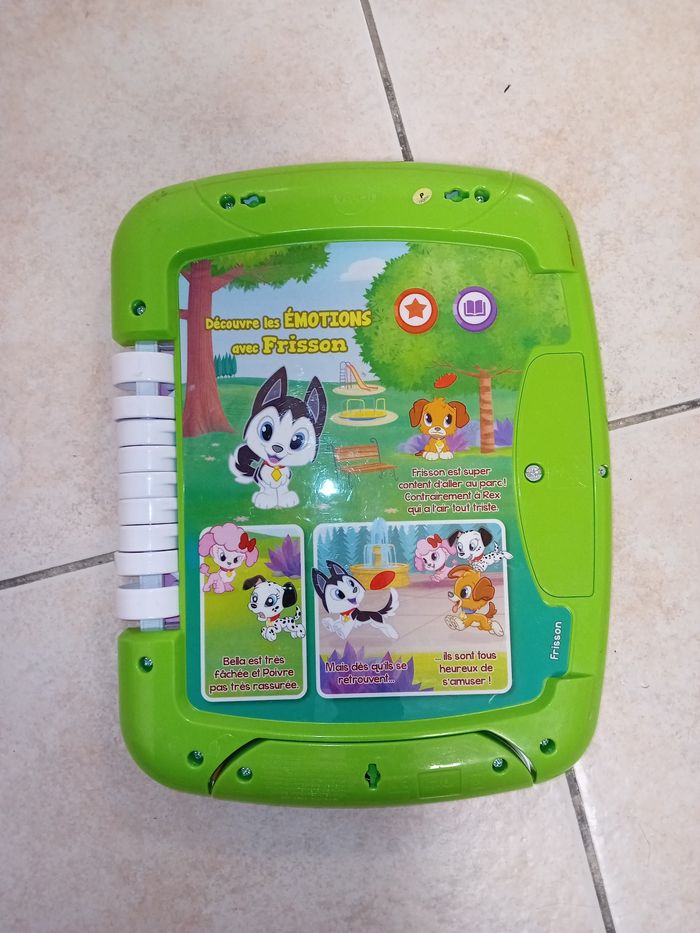 La poignée sur le côté, se tourne pour avoir aussi de l'autre côté plusieurs pages ou cela raconte une histoire tout en étant interactif.