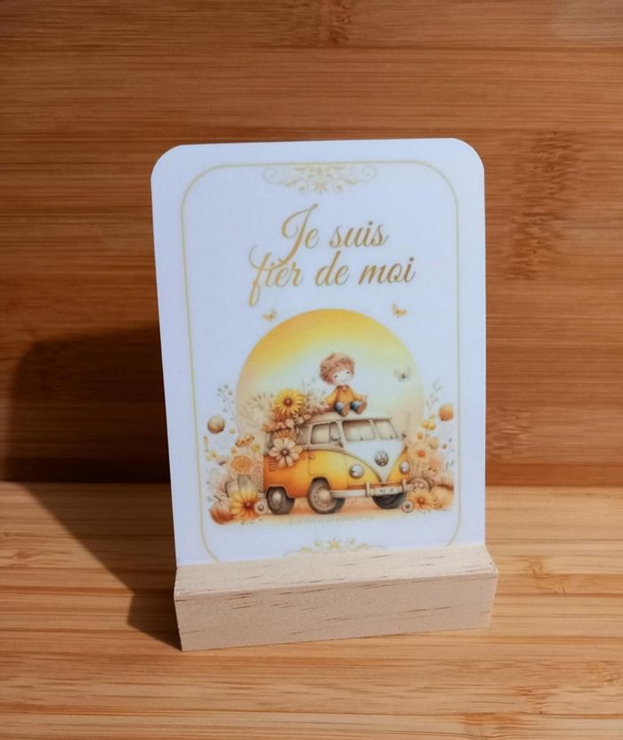 - Un support en bois élégant, parfait pour afficher la carte du jour et garder l'affirmation positive à l'esprit tout au long de la journée.
