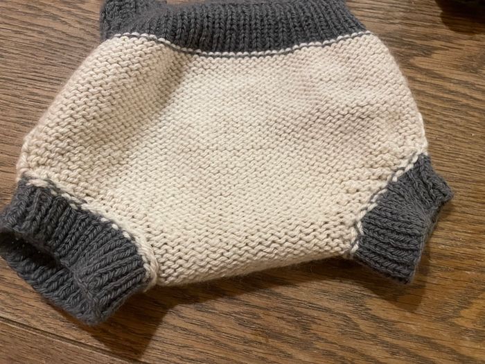 2 surcouches en laine, taille L (mon bébé fait 14,5 kg et elles commencent à serrer aux cuisses)