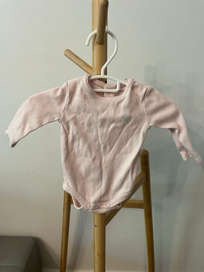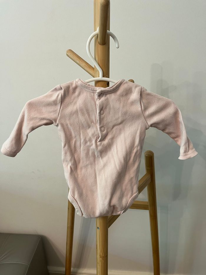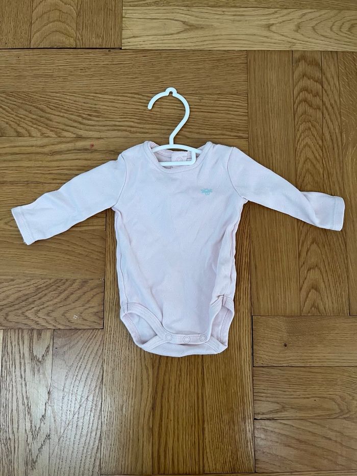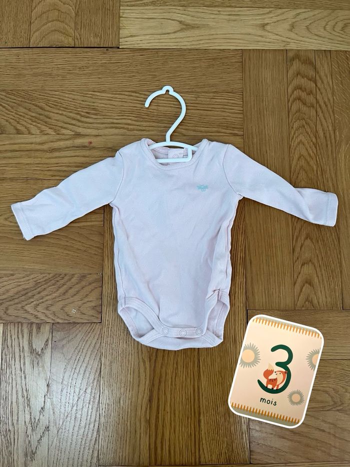 Body à manches longues fille. Couleur rose uni, taille 3 mois.
