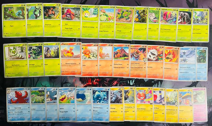 • 107 cartes normales (107/127 existantes, il manque uniquement les n° 5, 10, 16, 26, 35, 43, 45, 52, 59, 64, 70, 78, 83, 86, 97, 113, 120, 129, 134, 143)