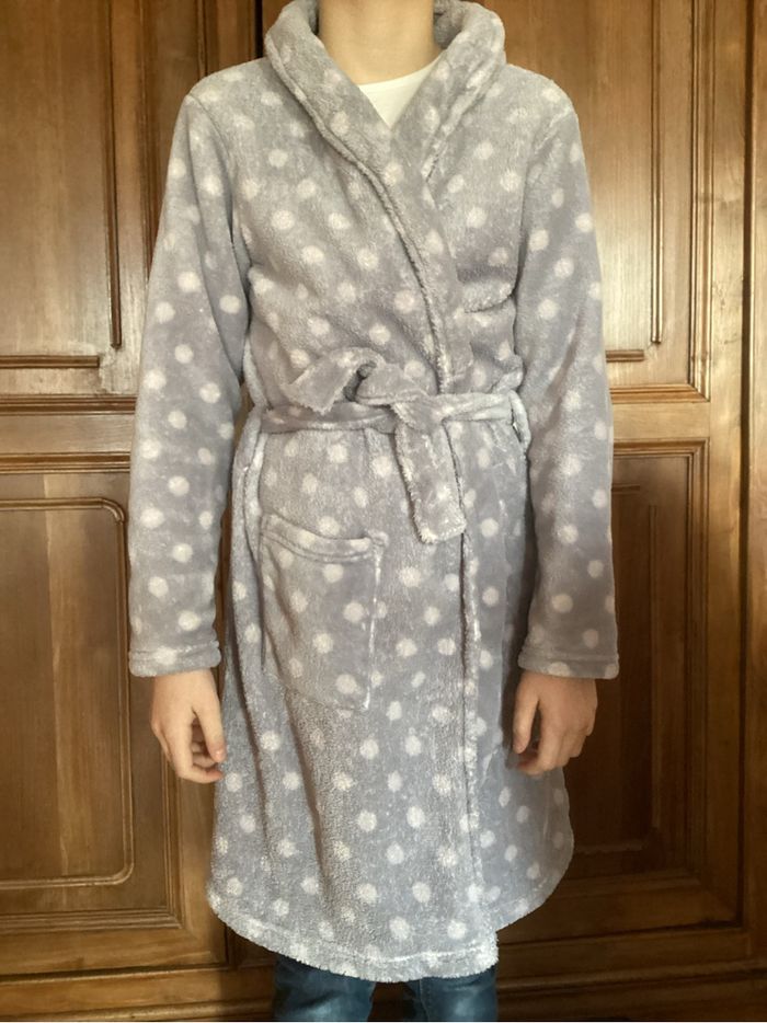 Robe de chambre polaire grise à pois blanc DPAM