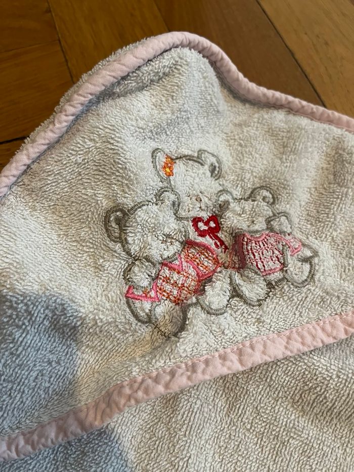 Sortie de bain bébé naissance - Nounours rose