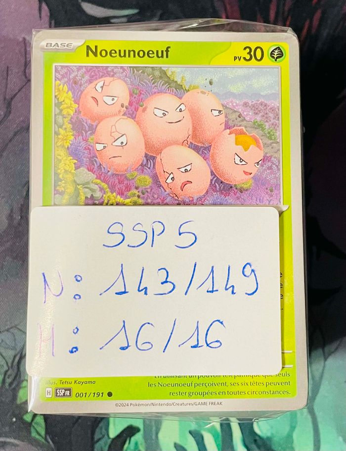 Bonjour, Je vends un lot de 159 cartes Pokémon issu de la série Etincelles Déferlantes (SSP) du bloc Ecarlate et Violet, idéal pour compléter une collection. 🔹 État et détails : • Cartes triées et rangées dans l’ordre chronologique • Excellent état • Cartes françaises et officielles 📦 Contenu du lot : • 143 cartes normales (143/149 existantes, il manque uniquement les n° 23, 94, 143, 146, 156, 190) • 16 cartes Holos (16/16 existantes) 💰 Prix du lot : 16 € ✨ Informations complémentaires : • Beaucoup d’autres lots disponibles pour cette série et pour d’autres séries • Possibilité d’acheter des cartes Reverse à l’unité selon vos besoins 📍 Remise en main propre possible sur Versailles 📦 Envoi possible 👉 N’hésitez pas à regarder mes autres annonces afin de constituer des lots plus conséquents. Cordialement,