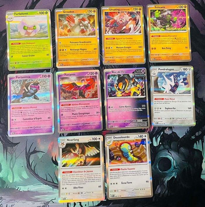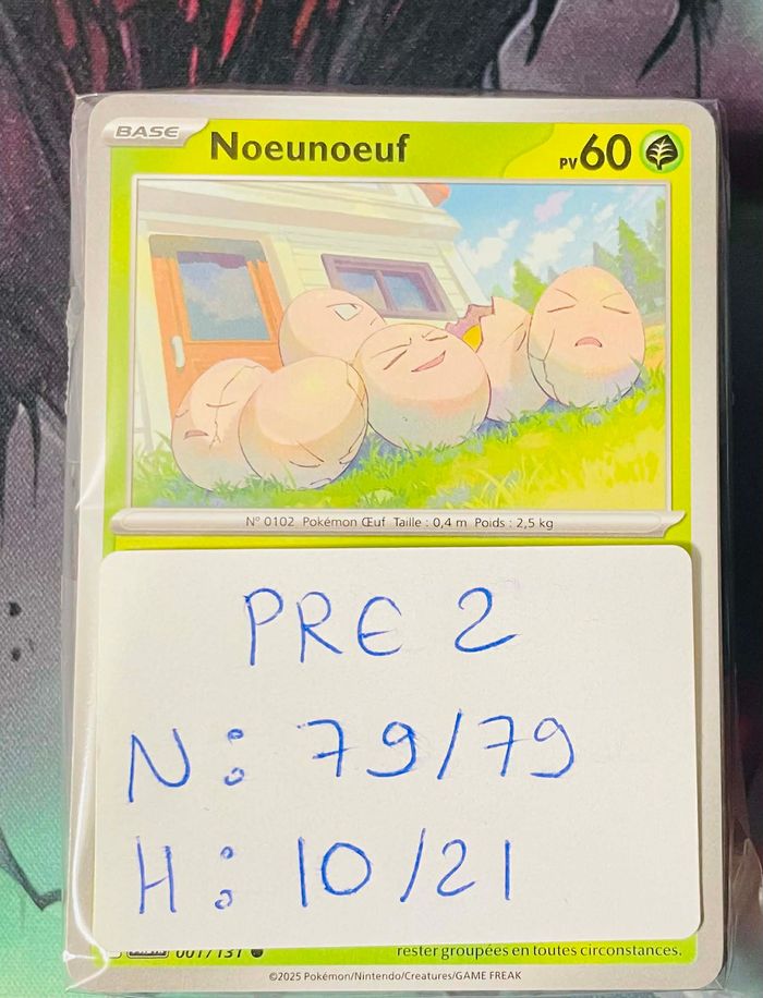 Bonjour, Je vends un lot de 89 cartes Pokémon issu de la série Evolutions Prismatiques (PRE) du bloc Ecarlate et Violet, idéal pour compléter une collection. 🔹 État et détails : • Cartes triées et rangées dans l’ordre chronologique • Excellent état • Cartes françaises et officielles 📦 Contenu du lot : • 79 cartes normales (79/79 existantes) • 10 cartes Holos (10/21 existantes, il manque uniquement les n° 5, 13, 22, 25, 29, 33, 37, 40, 43, 59) 💰 Prix du lot : 9 € ✨ Informations complémentaires : • Beaucoup d’autres lots disponibles pour cette série et pour d’autres séries • Possibilité d’acheter des cartes Reverse à l’unité selon vos besoins 📍 Remise en main propre possible sur Versailles 📦 Envoi possible 👉 N’hésitez pas à regarder mes autres annonces afin de constituer des lots plus conséquents. Cordialement,