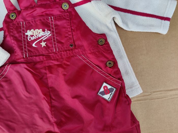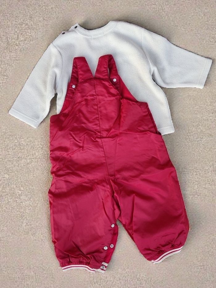 Composé d’une salopette chaude et d’un pull polaire écru, parfait pour garder bébé bien au chaud.