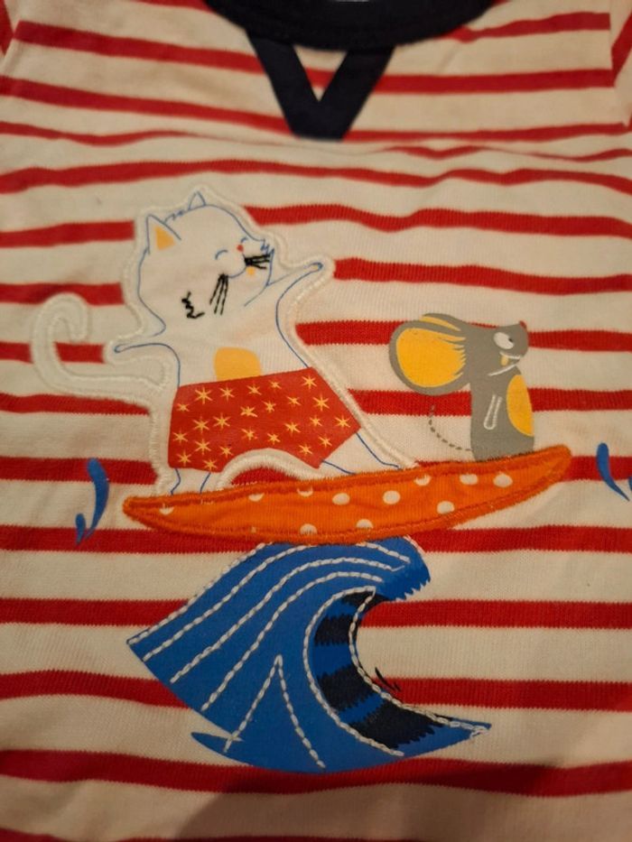 Pyjama bébé à rayures chat et souris .1-3 M. Absorba. Excellent qualité
