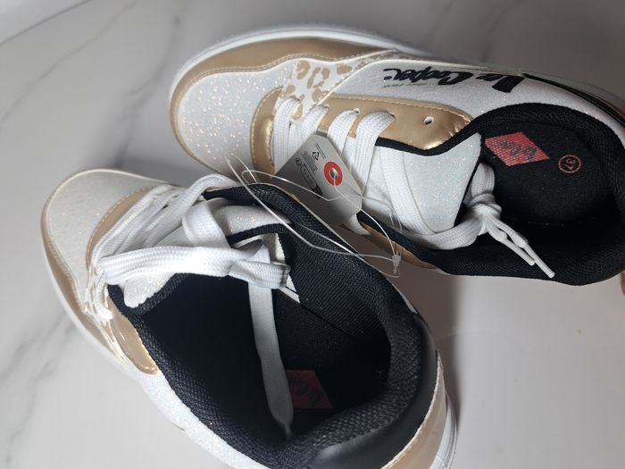 ➡️ Une rayure est présente sur la basket gauche, visible sur la photo.