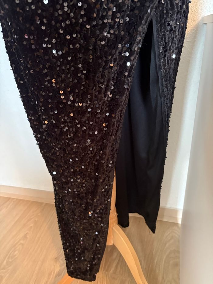 #robeDesoirée #robeSequins #robeLongue #robeNoire #robeAsymétrique #robeFendue #tenueÉlégante #modeFemme #glamour #soiréeChic #sequins #blackDress