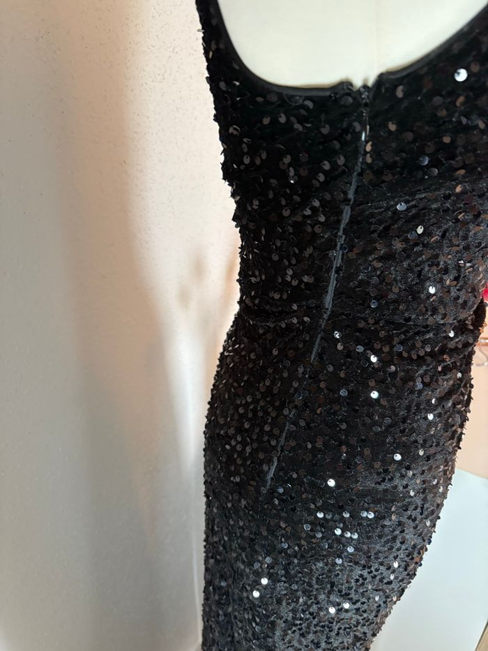 Magnifique robe longue noire entièrement recouverte de sequins, idéale pour une soirée, un gala, un mariage ou le Nouvel An.