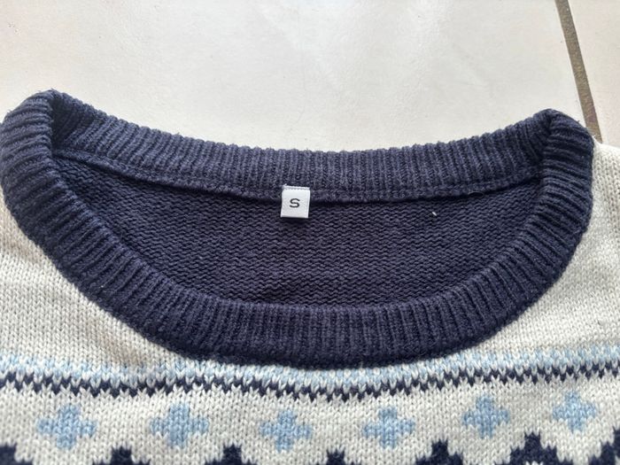 Pull hiver motif flocon bleu et blanc taille S - photo numéro 4