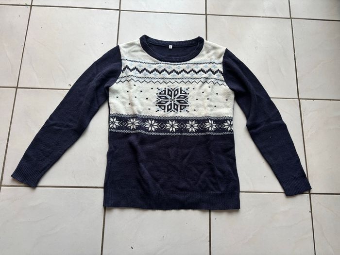 Pull hiver motif flocon bleu et blanc taille S - photo numéro 1