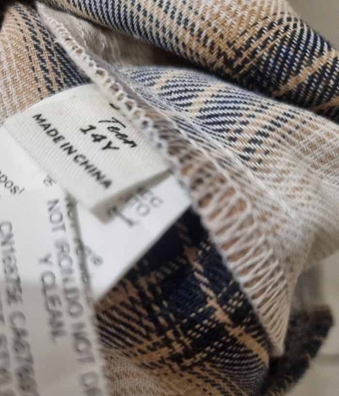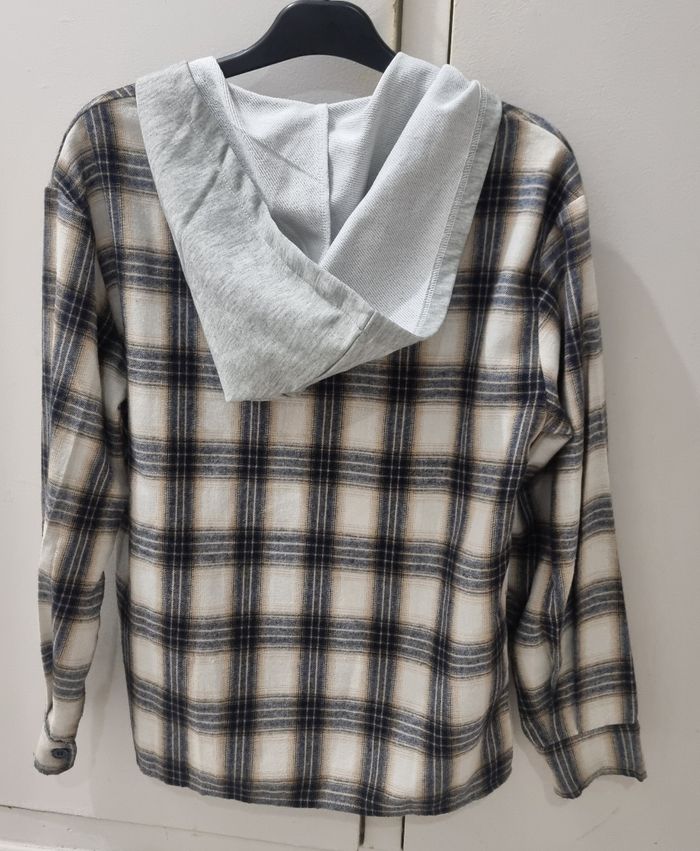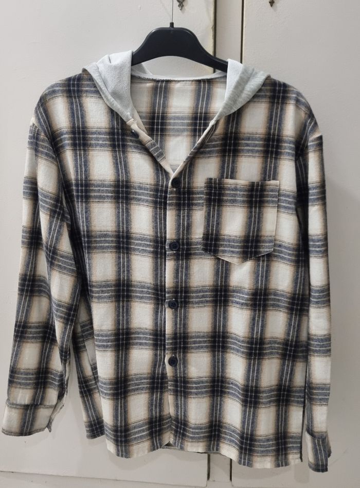 chemise à carreaux beige et noir avec capuche grise taille 14ans