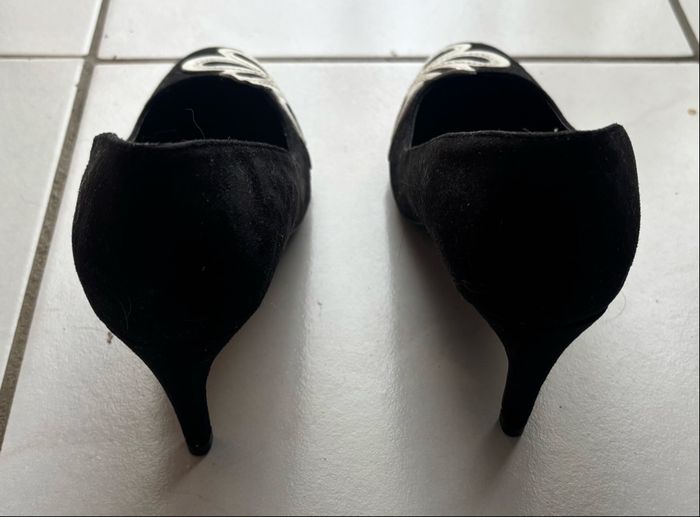 Escarpins en daim noir fleur blanche 36 - photo numéro 3