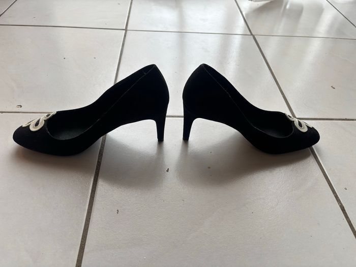 Escarpins en daim noir fleur blanche 36 - photo numéro 2