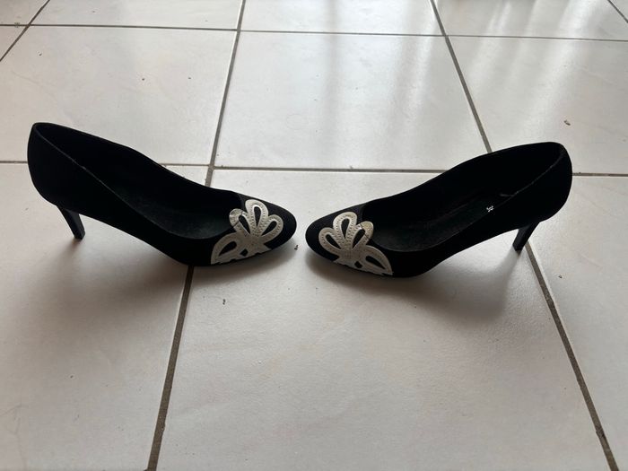 Escarpins en daim noir fleur blanche 36 - photo numéro 1