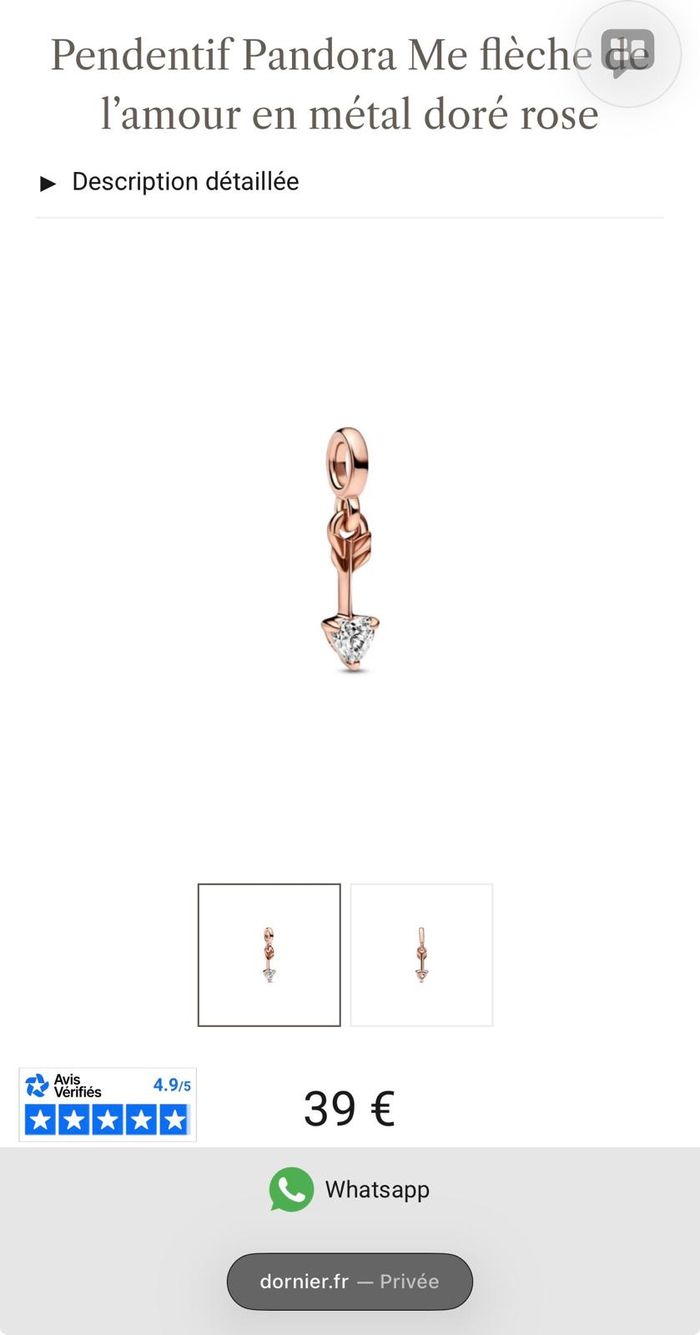Je vends ce charm pendentif Pandora neuf, avec une flèche de cupidon dorée et un cœur argenté. 💘
