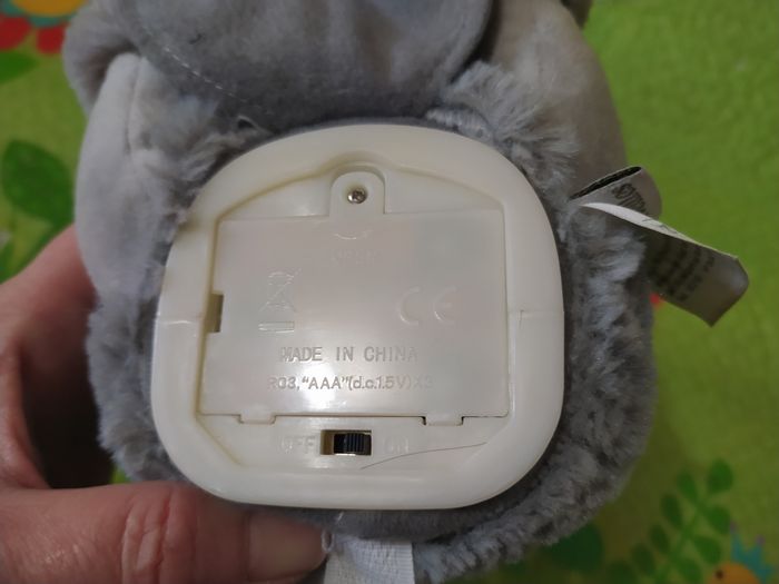 Ouvre ses bras en fessant "Coucou" trois fois avec différentes intonations quand on appuie sur sa patte gauche "Press Here",