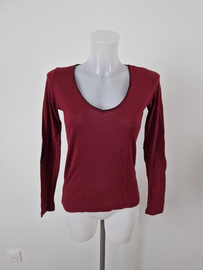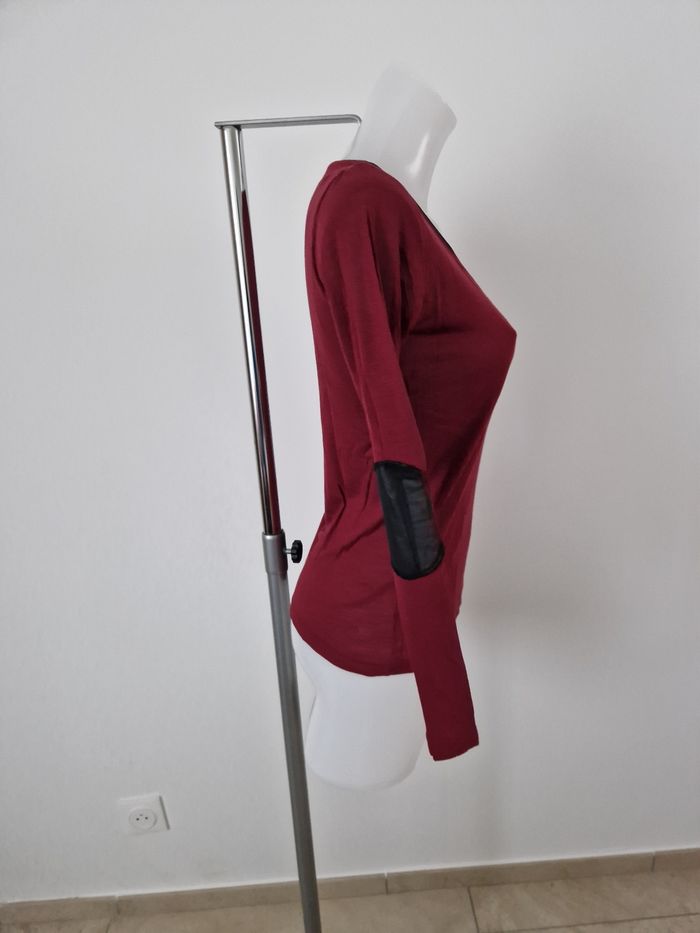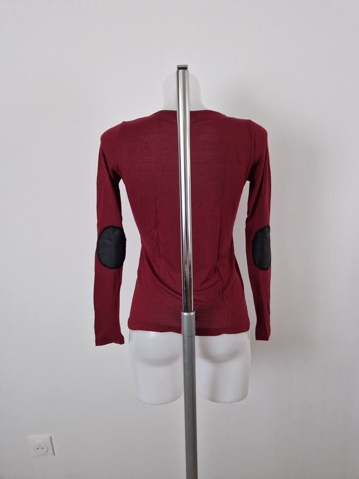 Tee-shirt bordeaux avec doublure noire aux coudes, Jennyfer