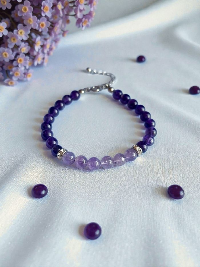 Expédition rapide!!! Bijou créatrice Némélia Némélia.fr Bracelet "Douceur Améthyste" – Améthyste lavande & Améthyste Un bijou empreint de sérénité et d’élégance naturelle, entièrement fait main dans notre atelier. Ce bracelet associe les nuances délicates de l’améthyste lavande à la profondeur mystique de l’améthyste violette, toutes deux en perles de 6 mm. Une composition harmonieuse qui évoque l’apaisement de l’esprit et l’ouverture du cœur. Détails : Pierres naturelles : Améthyste lavande & Améthyste (qualité AA) Taille des perles : 6 mm Longueur : 18 cm – convient aux poignets de 15,5 à 17,5 cm Fermoir et apprêts en acier inoxydable Chaîne de réglage incluse pour un ajustement parfait Vertus de l’améthyste : Pierre de paix intérieure, elle aide à calmer le mental, favoriser la clarté d’esprit et le sommeil réparateur. Elle invite à l’intuition et au recentrage. Livraison rapide et soignée Possibilité d’ajouter un joli message personnalisé, idéal pour une attention toute particulière (fête des mères, anniversaire, naissance…).