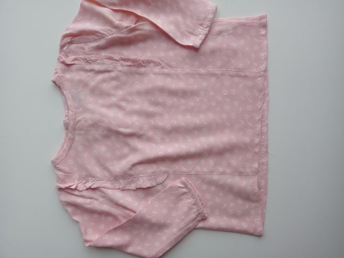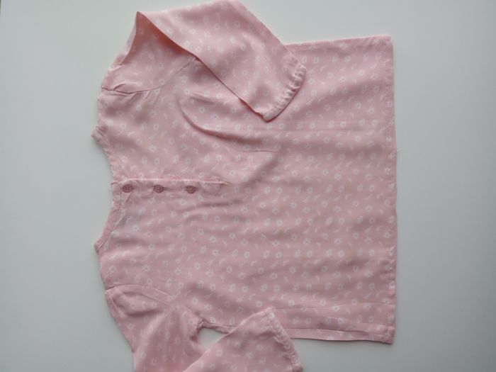 Chemise rose en très bon état avec des fleurs blanches, se ferme au dos avec des boutons, marque LA BOITE A MALICES