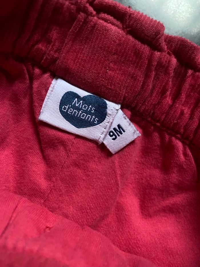 Joli pantalon velours rose doublé coton 9 mois Mots d'enfants