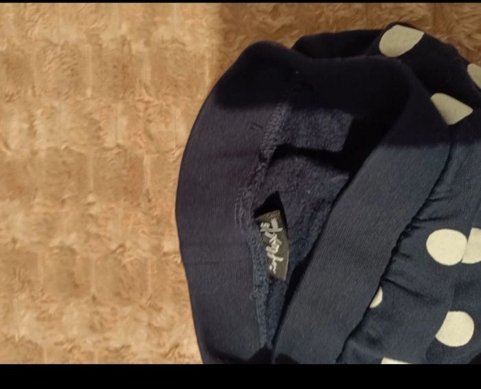 Motif : Bleu marine avec de gros pois blancs cassés.