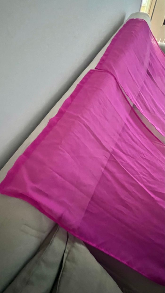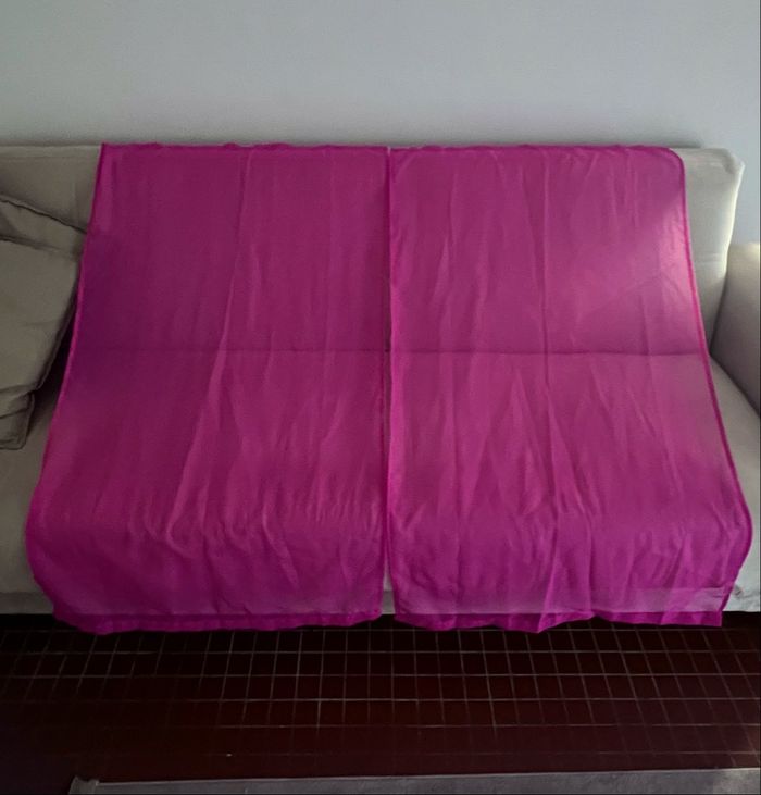 Doubles rideaux voilages Identiques Coloris fushia En polyester 119 cm / 67 cm Je réponds rapidement aux messages Envoi rapide et soigné