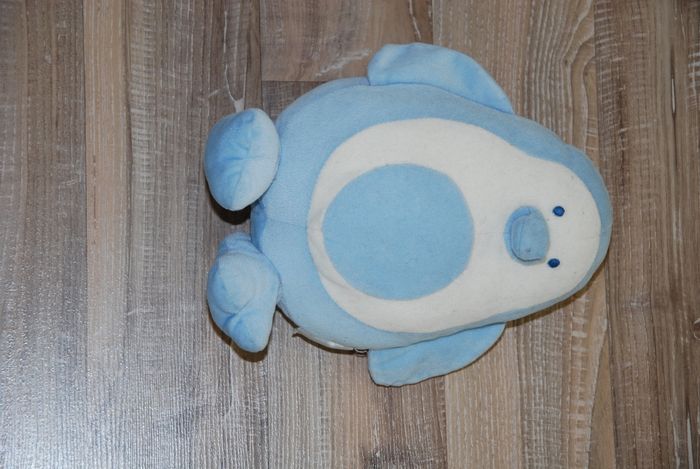 doudou pingouin bleu et blanc kiabi 19 cm